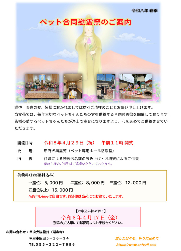 令和8年度合同慰霊祭と例月供養会について